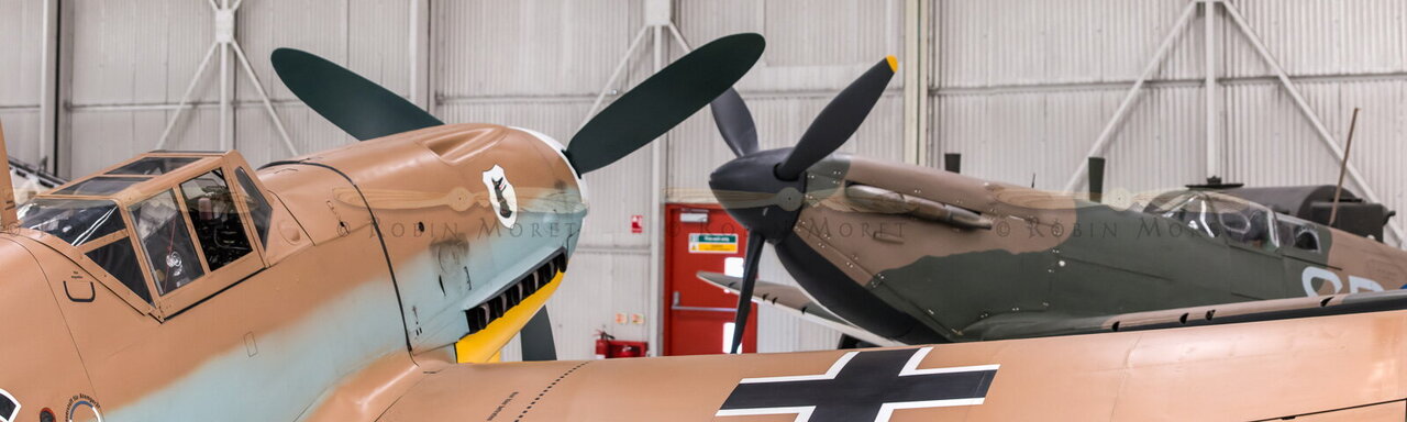 - 2017, aircraft, Angleterre, Bf 109, Bf 109G, Cosford, England, Fury, Gustav, Hawker, Me 109, Messerschmitt, Mk.I, Mk.II, Mk.IIC, museum, Pano, RAF Museum, Royaume-Uni, Spitfire, Supermarine, UK, United Kingdom